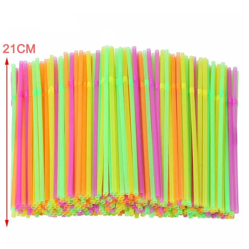 100 шт. Пластик соломинки гибкие одноразовые соломинки гибкие флуоресцентный питьевые соломки вечерние DIY напиток Соломы Бар Клуб Аксессуары