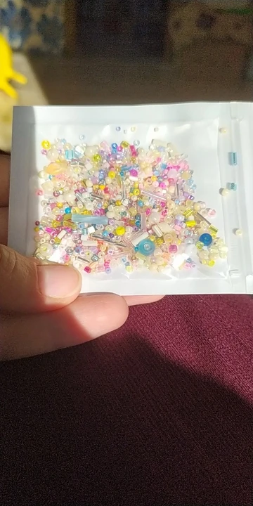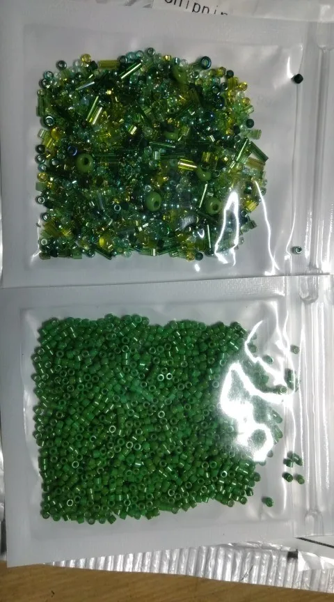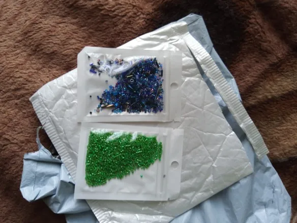 Прийшло за 15 днів. Це моя перша участь в Халяві і перший виграш, мені дістався золотий мікс плюс продавець зробив подарунок зелений бісер ! Це дуже- дуже приємно)) і неочікувано). Бісер розфасований в зручні зіп - пакети, в яких зручно зберігати. Вага міксу 13,4 грами. В міксі розсип золотих відтінків бісеру, склярусу і намистин, на брошку листочок якраз саме те, що треба. Зелений бісер має колір свіжої зелені і половинка покрита оливковим покриттям, колір стійкий - від рідини для зняття лаку не зтирається. Тепер, знаючи якість бісеру в цьому магазині, і відношення продавця до покупця , можна купувати бісер тут. Дуже задоволена сервісом магазину, рекомендую.