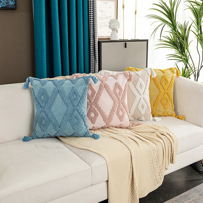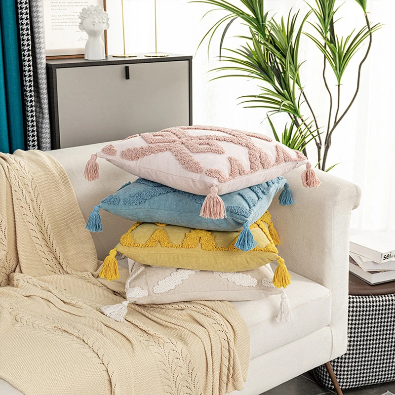 Чехол для подушки с ворсом в стиле бохо, 30x5045x45 см, бежевая наволочка для подушки с кисточками, ручная работа, домашний декор, диван-кровать MT34