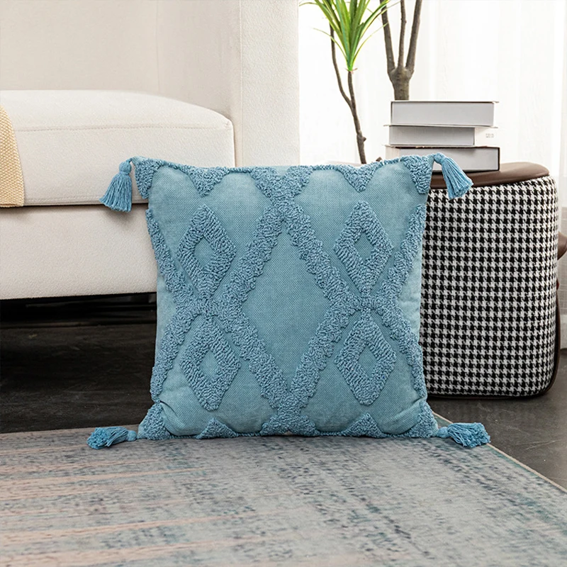 Наволочка с кисточками 45x4 5 см30x50 см, бежевая, синяя, желтая, р...