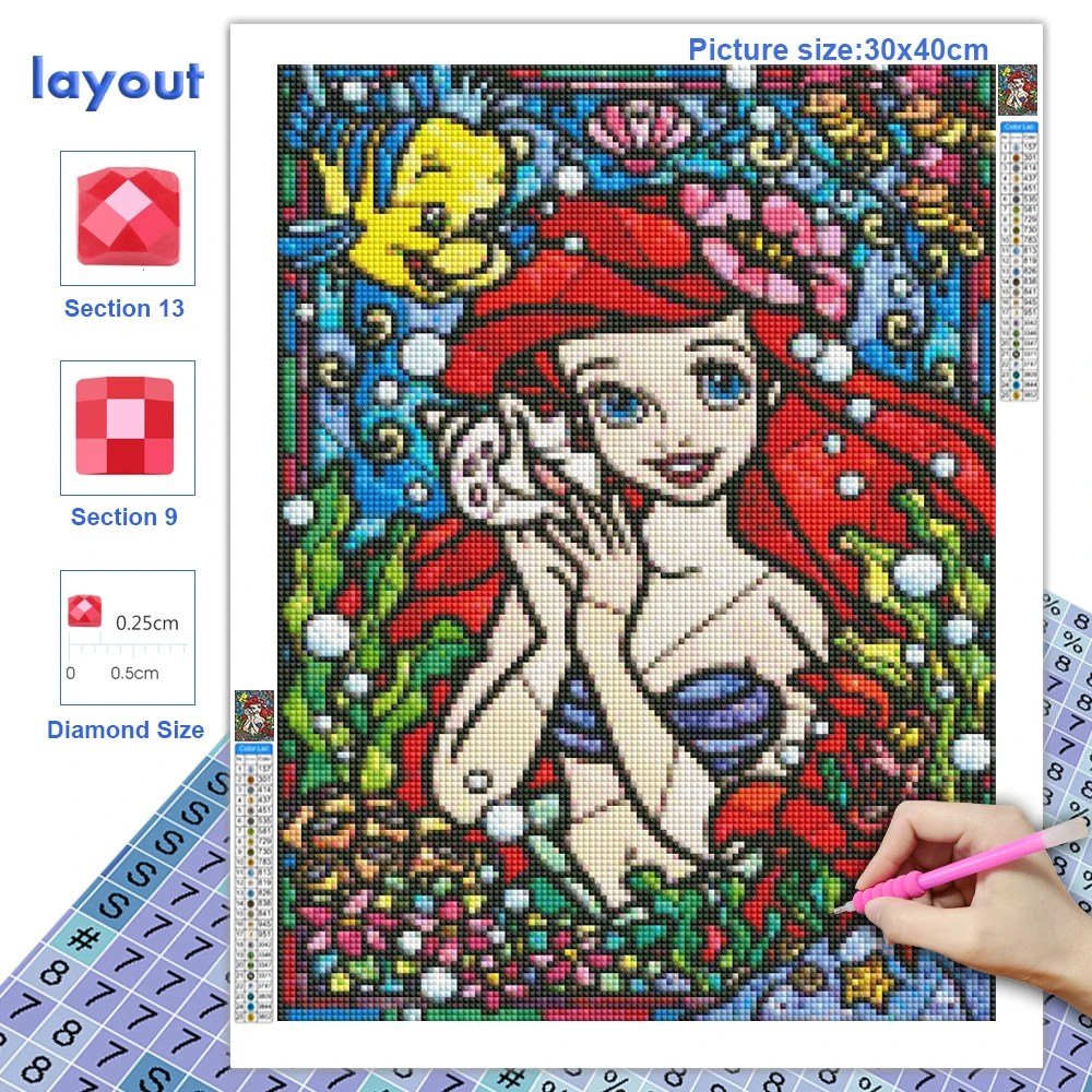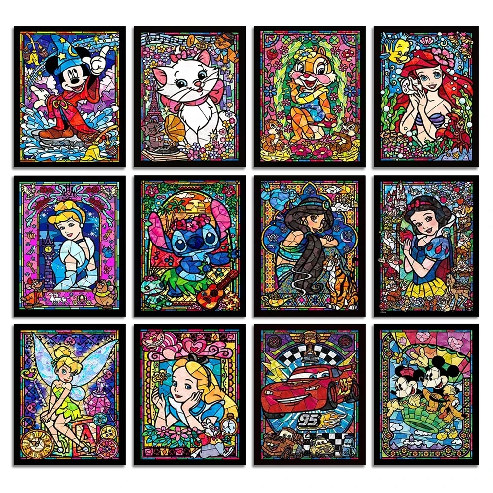 Алмазная живопись сделай сам с изображением Принцессы Диснея, цветное окно, мультипликационный персонаж, картина для украшения дома