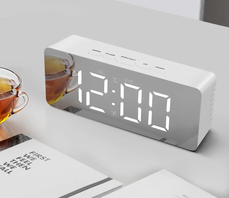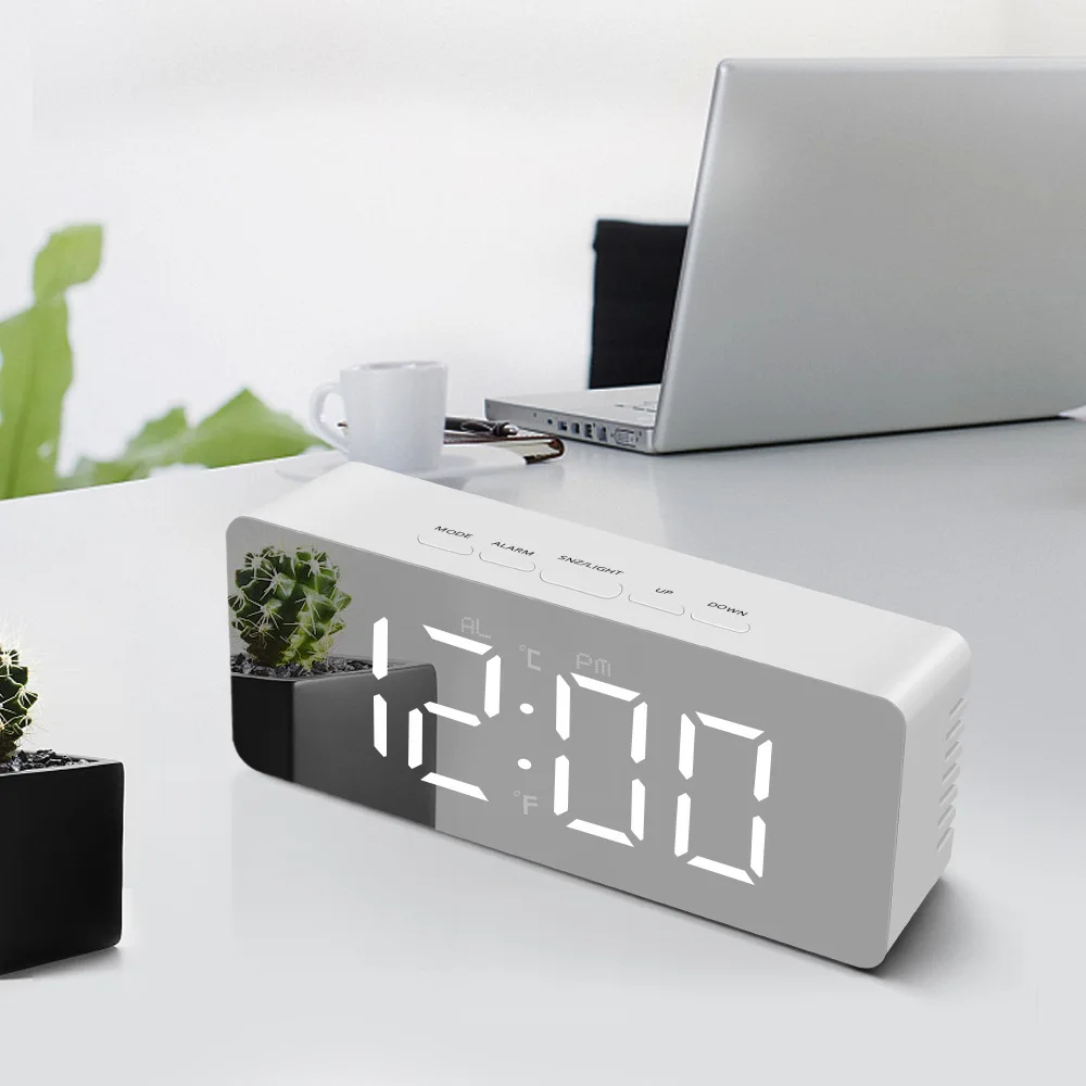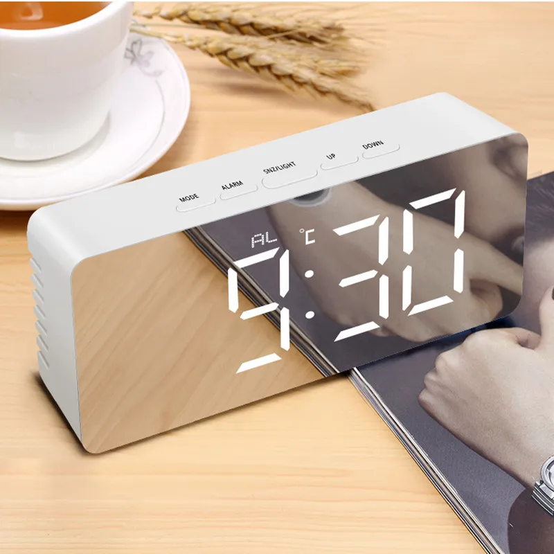 Электронный зеркальный будильник с ЖК-дисплеем, цифровые настольные часы с функцией повтора и подсветкой для украшения дома, большой экран показывает время и температуру