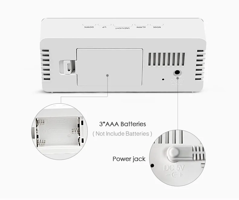 5 функциональных кнопок (режим, будильник, SNZ/светильник, вверх, вниз)