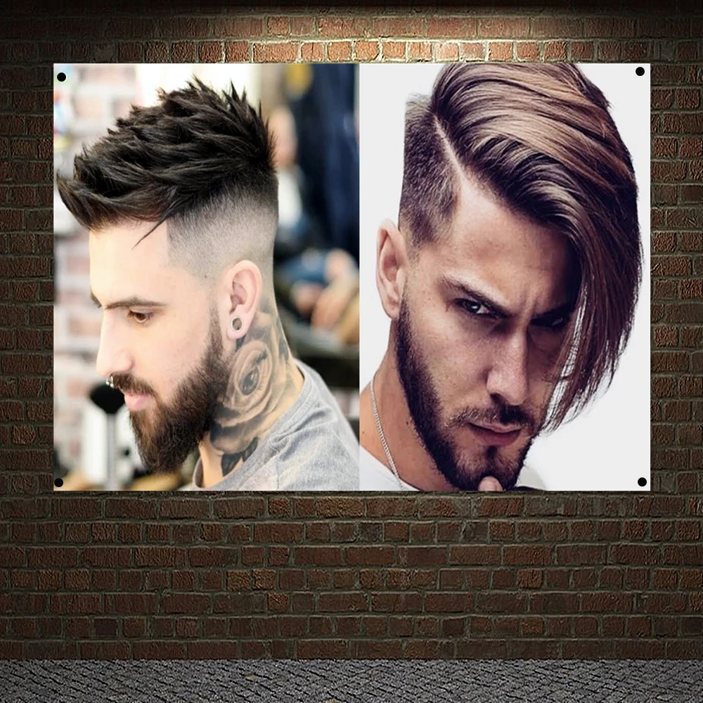 Мужской баннер с короткими боками и вырезами на спине, баннер, наклейка с флагом, гобелен, Картина на холсте, вырезание волос, Настенная картина, плакаты для парикмахерской