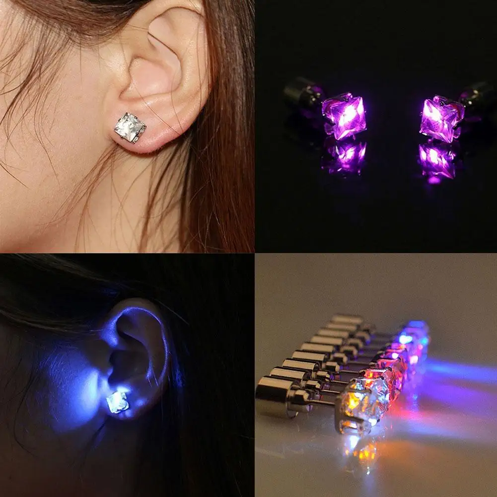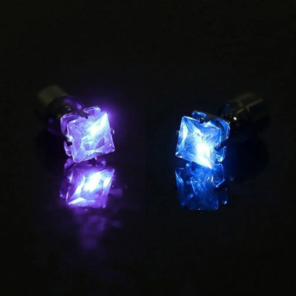 Светодиодсветильник ка Рождественский подарок Хэллоуин вечевечерние квадратная ночь Bling шпильки серьги модные украшения для мужчин женщин