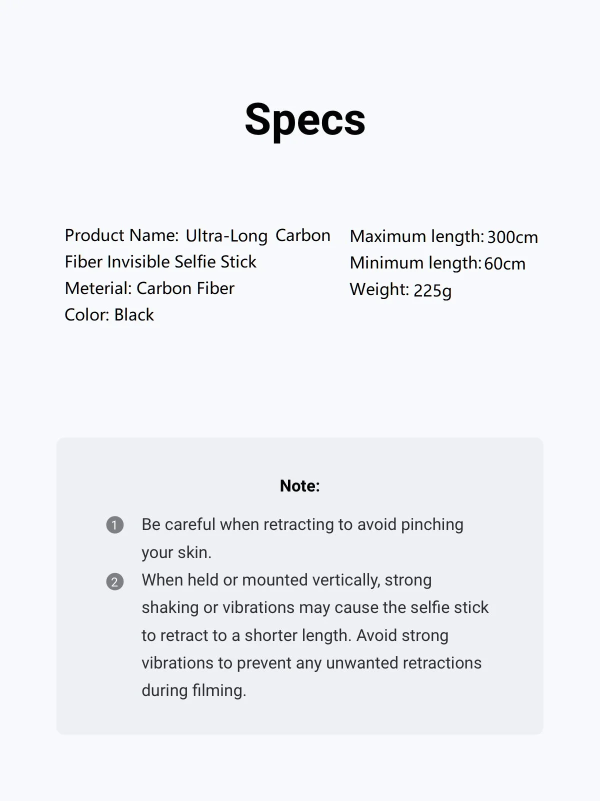 Сверхдлинная невидимая селфи-палка 3 м из углеродного волокна для I...