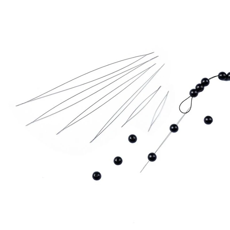 Изогнутые Иглы для бисероплетения с центральным отверстием, инструменты из нержавеющей стали, булавки для бисера, нить для нитей, шнур, легкое Изготовление ювелирных изделий, 5 шт.