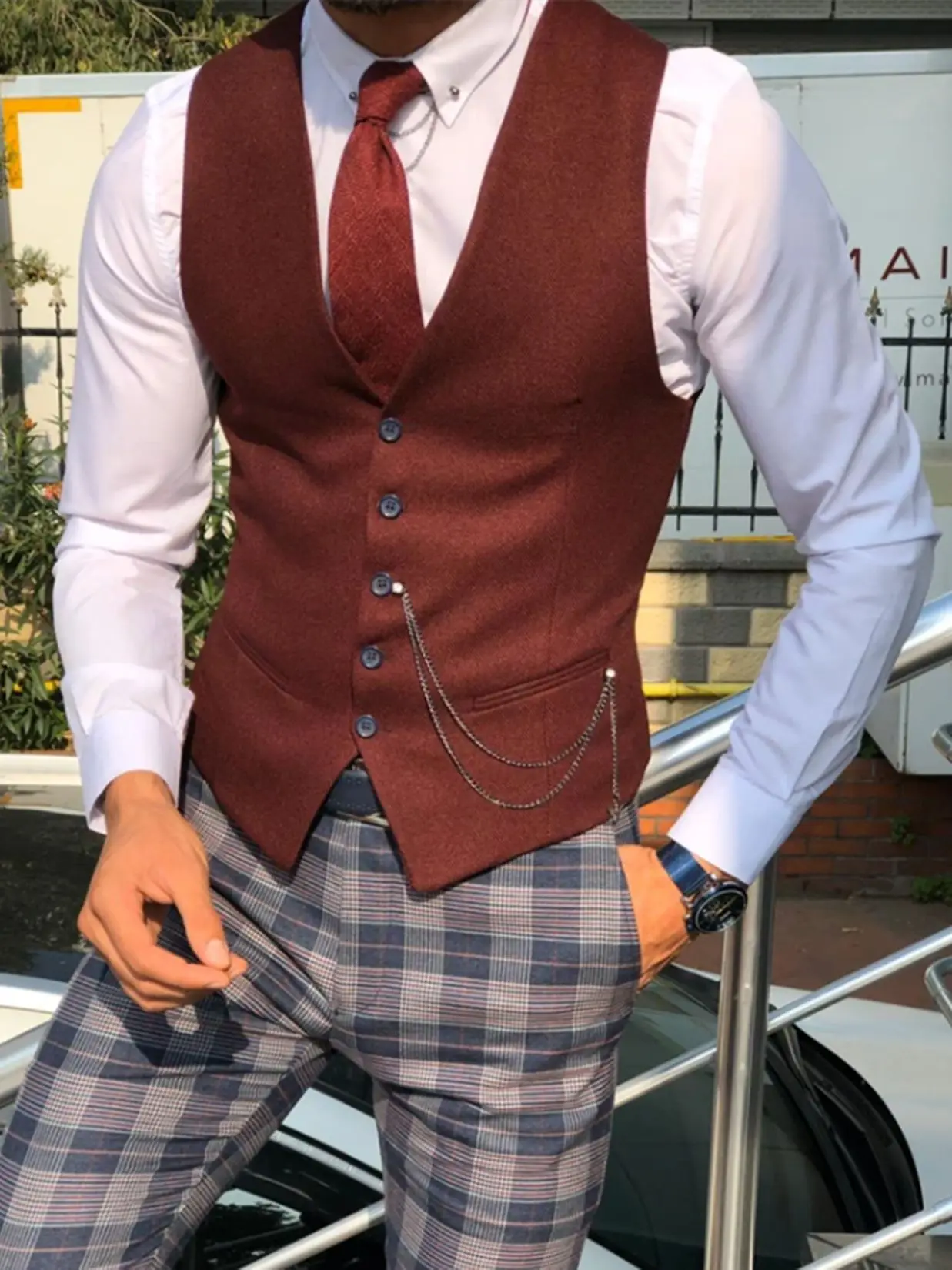 Мужской твидовый жилет с 5 пуговицами в елочку, деловой костюм для жениха, свадебный жилет