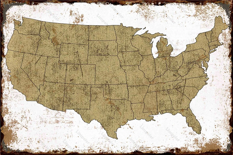 Металлическая карта, Жестяная Табличка, Соединенные Штаты, жестяной...