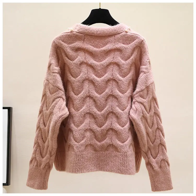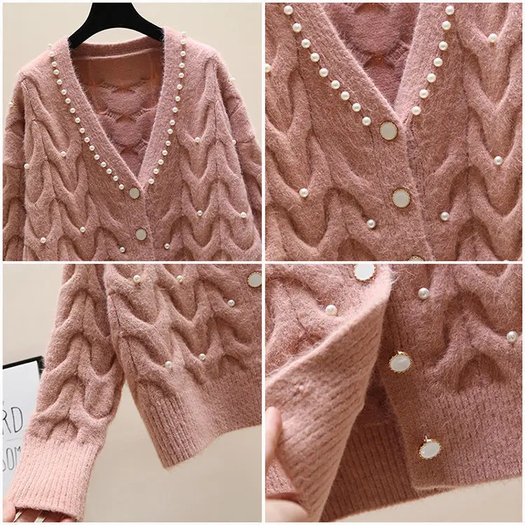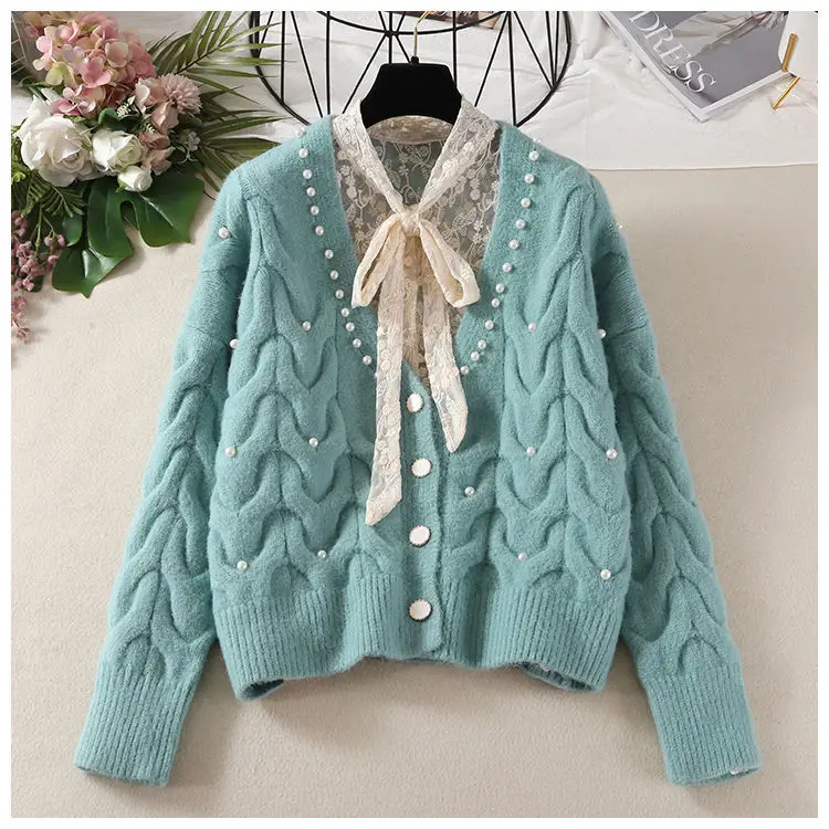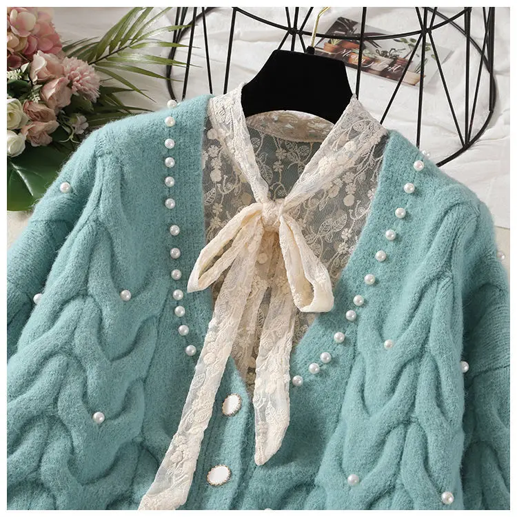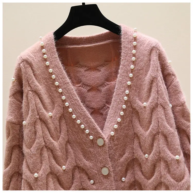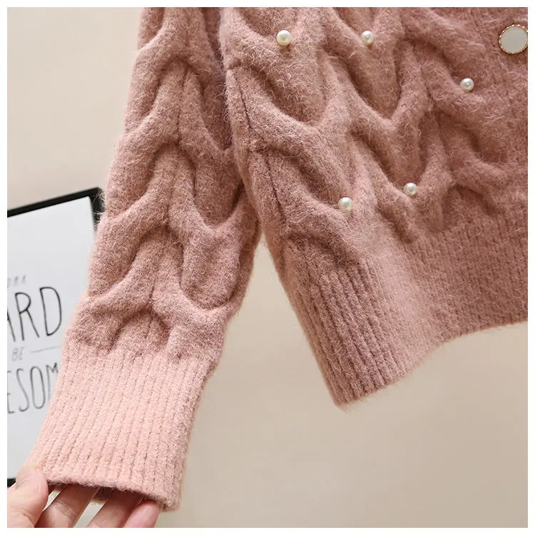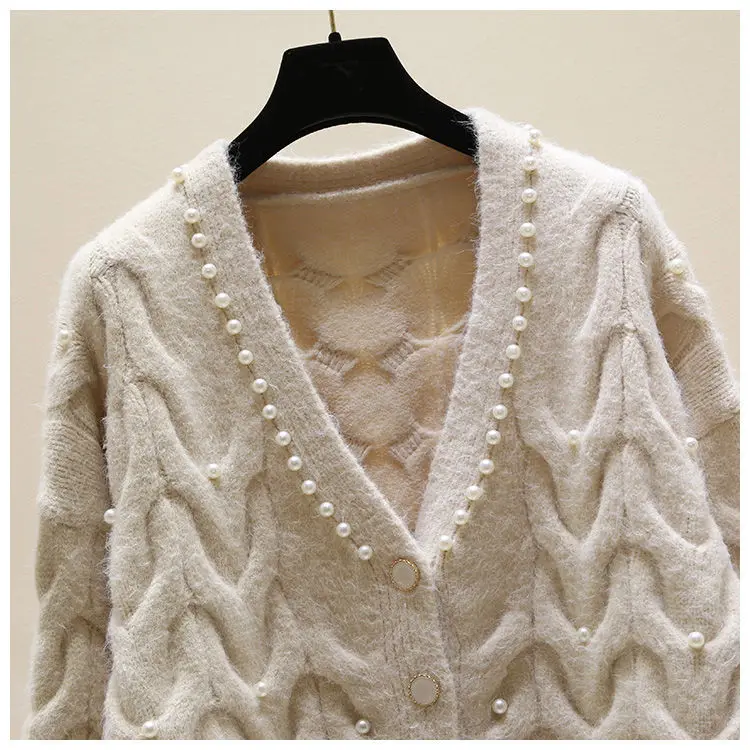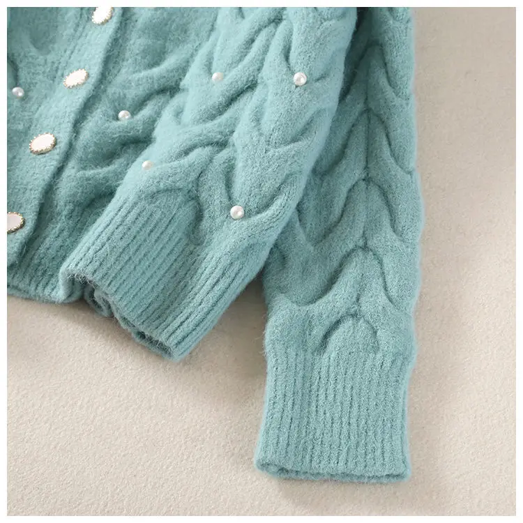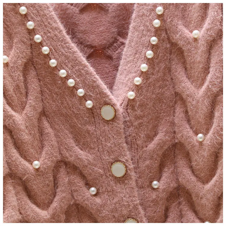 Женский вязаный кардиган осень-зима с длинным рукавом V образным вырезом однобортный свитер верхняя одежда, красивое и элегантное милое бисер тонкий свитер Femme