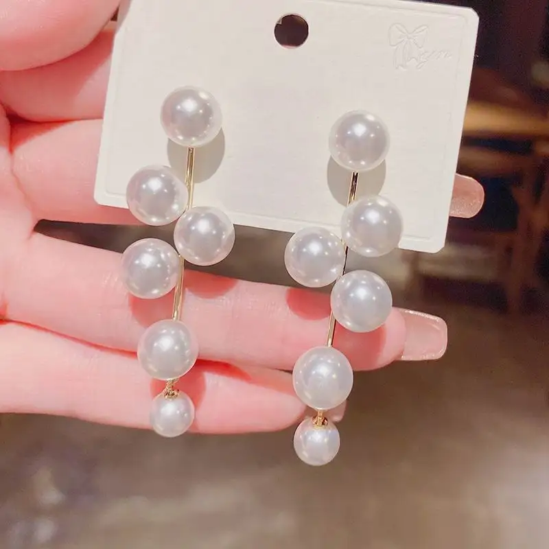 Модные Современные жемчужные серьги высокого качества, элегантные белые большие длинные висячие серьги, оптовая продажа ювелирных изделий