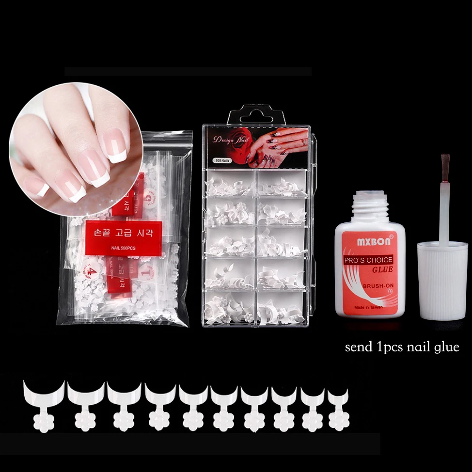 100500 шт Французский Типсы с клей для ногтей Набор накладных ногтей Съемная художественное оформление ногтей 10 размеров профессиональные салонные инструменты