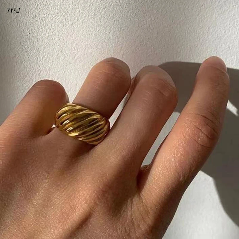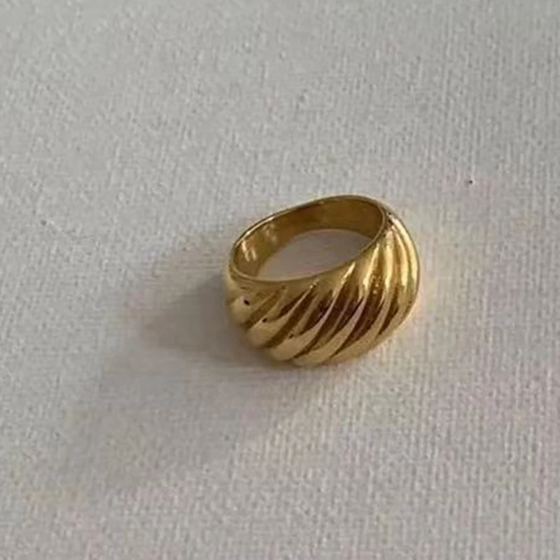 Крупное Полосатое массивное кольцо с круассаном для женщин, из нержавеющей стали, золотое, смелое, крученое кольцо, дизайнерские ювелирные изделия, оптовая продажа, 2021 Прямая поставка