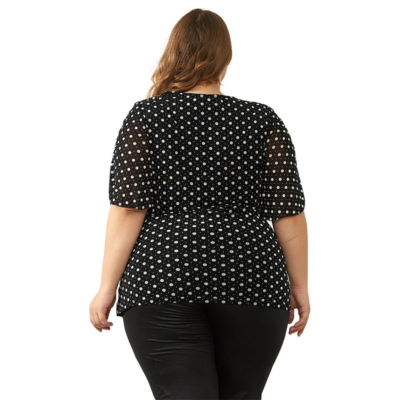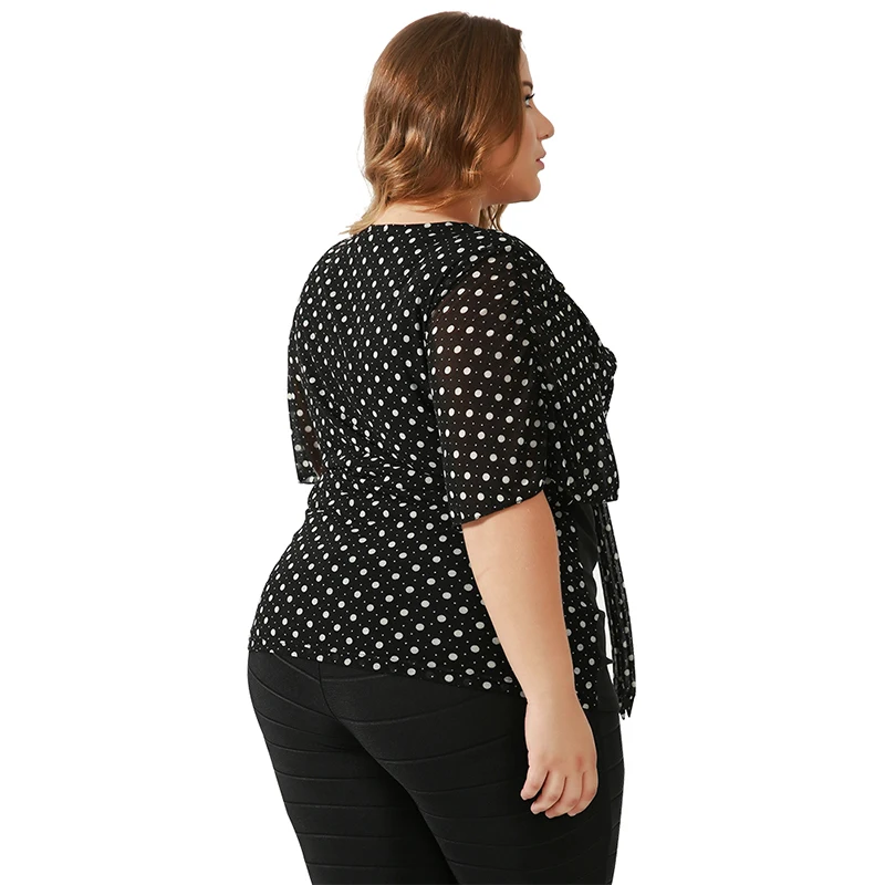 Винтажная Футболка YTL, женские летние топы, размера плюс, в горошек, со стразами, с бантом на шее, с рукавом летучая мышь, Повседневная футболка 8XL H060