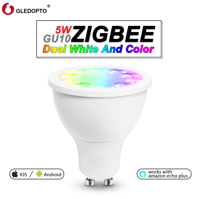 Высококачественный светодиодный просветильник GLEDOPTO Zigbee 3,0 RGB + CCT 5 Вт GU10 для умного дома, диммер AC100-240V, двойной светильник, работа с Alexa Echo Plus