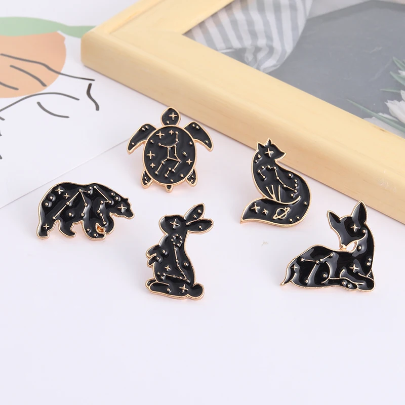 Астрологические животные эмалированная булавка лиса Олень Медведь Кролик черепаха значок для одежды сумка подарки для друзей на заказ черные панковские броши