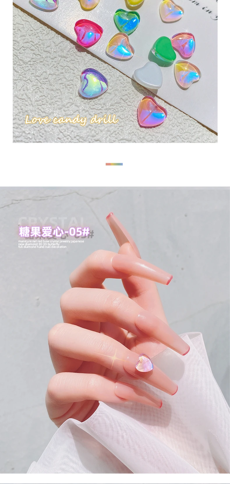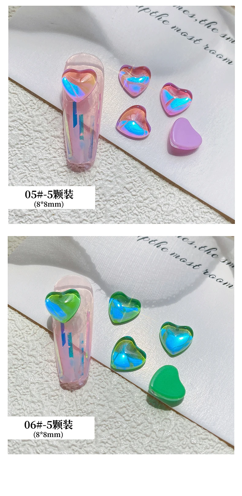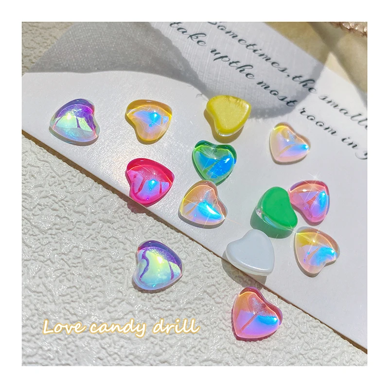 5 шт. Сияющие Конфеты Flatback любовь Опал Кристалл 3D Маникюр Аврора Цвет Персиковое сердце стразы украшение для ногтей амулеты ювелирные изделия