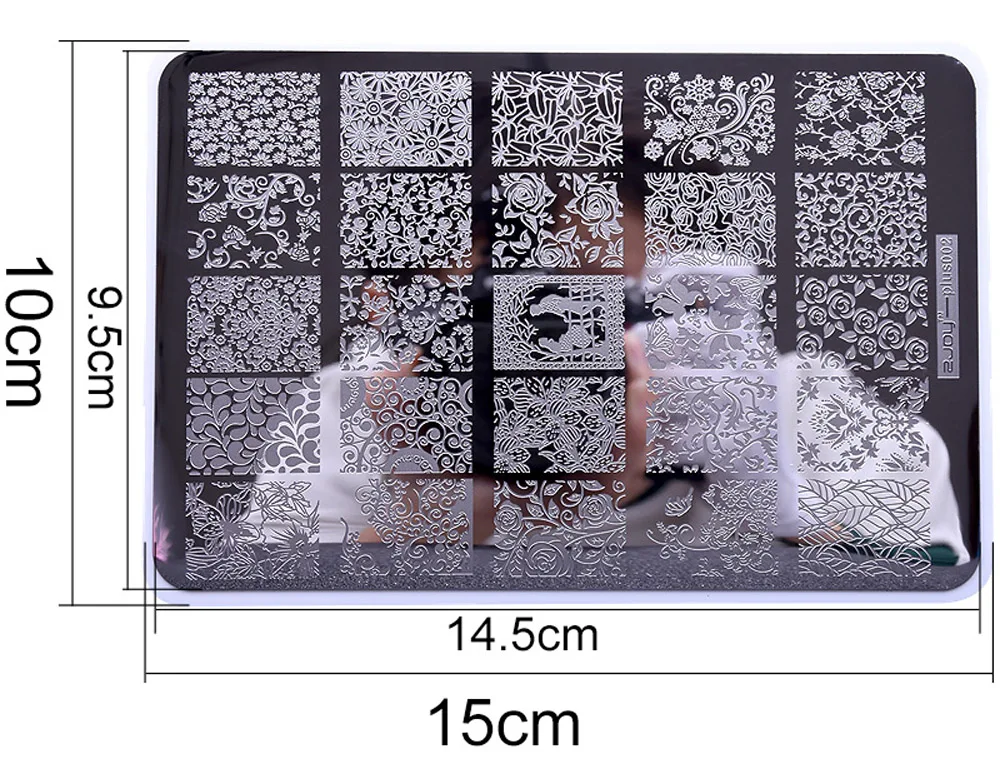 Трафареты для стемпинга ногтей, с цветочным узором, 14, 5x9, 5 XXL