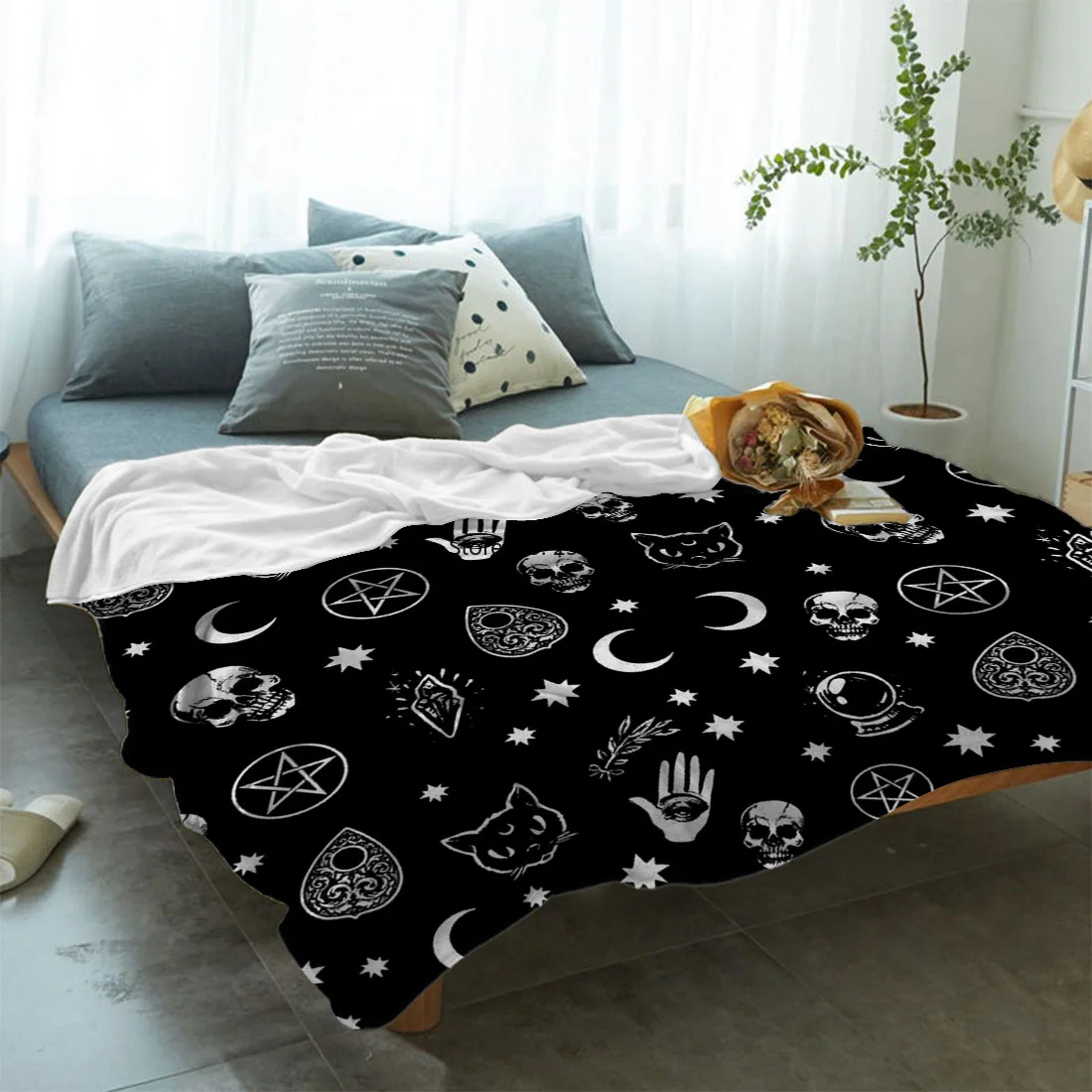 Хэллоуин ведьма череп Луна гадания покрывало для кровати Фланелевое...