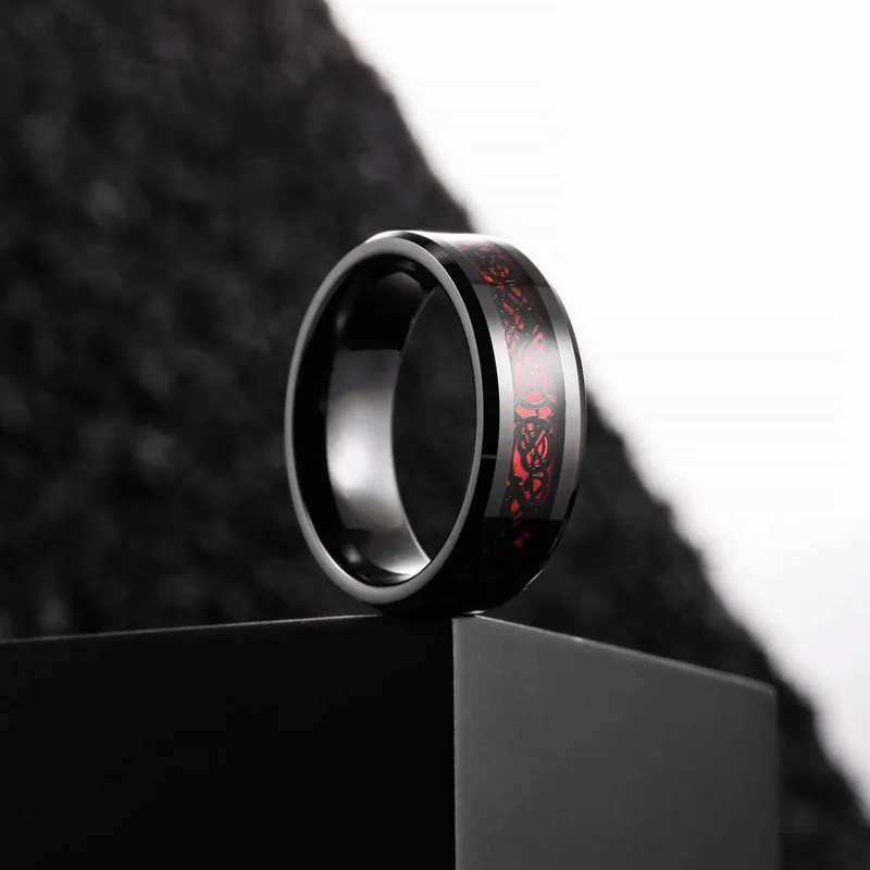 Модное ювелирное изделие из титановой стали, кольцо с драконом крас...