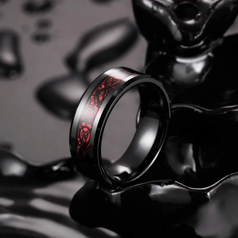 Винтажное черное кольцо из кельтского дракона 8 мм мужское кольцо и...