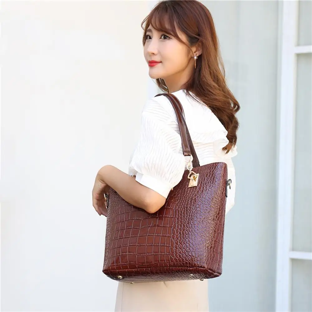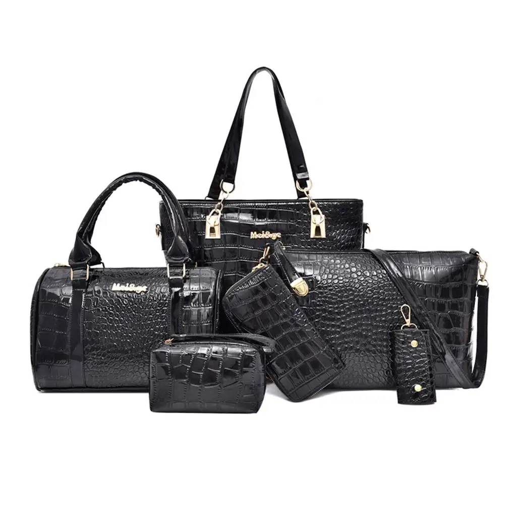 Комплект из 6 сумок на плечо с тиснением под кожу аллигатора, Классический роскошный дизайн, однотонный клатч, кожаные женские сумки для карт, сумка на плечо