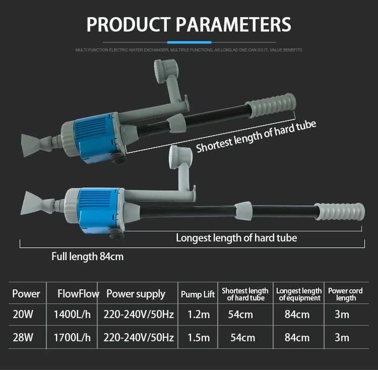 Электрический насос для аквариума 2028 Вт, сменный насос для воды, инструмент для очистки аквариума, устройство для очистки воды, очистки гравия, сифон, фильтр, насос
