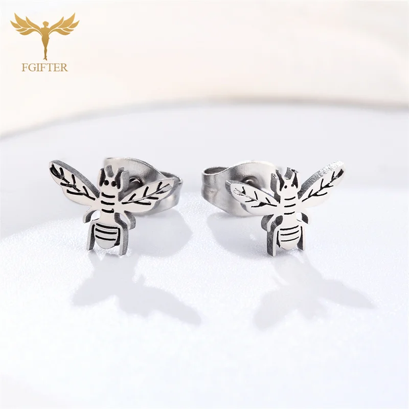 Милые серьги в виде насекомых и животных, маленькие серьги-гвоздики в виде пчелы, Женские аксессуары стального цвета, модные популярные украшения, оптовая продажа