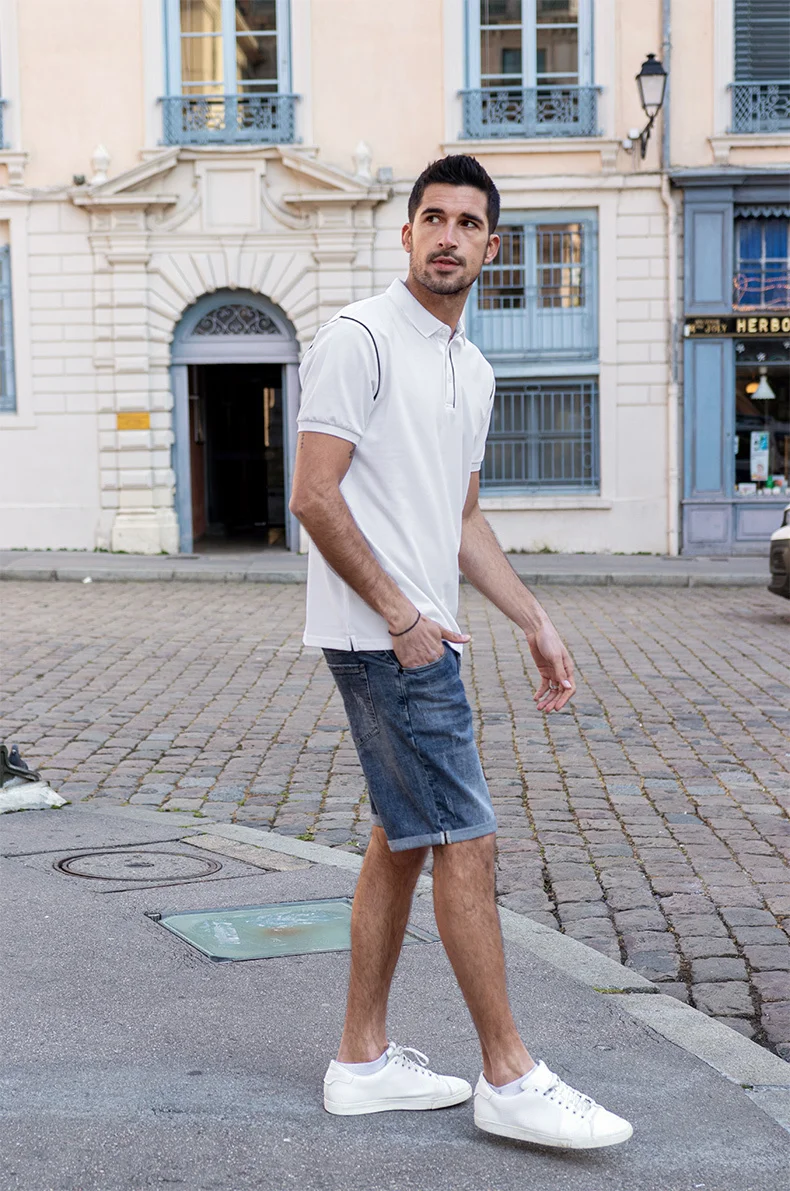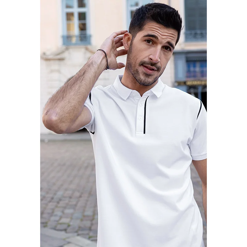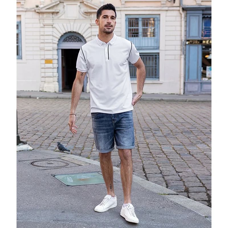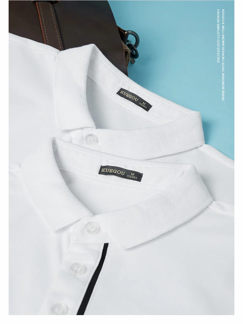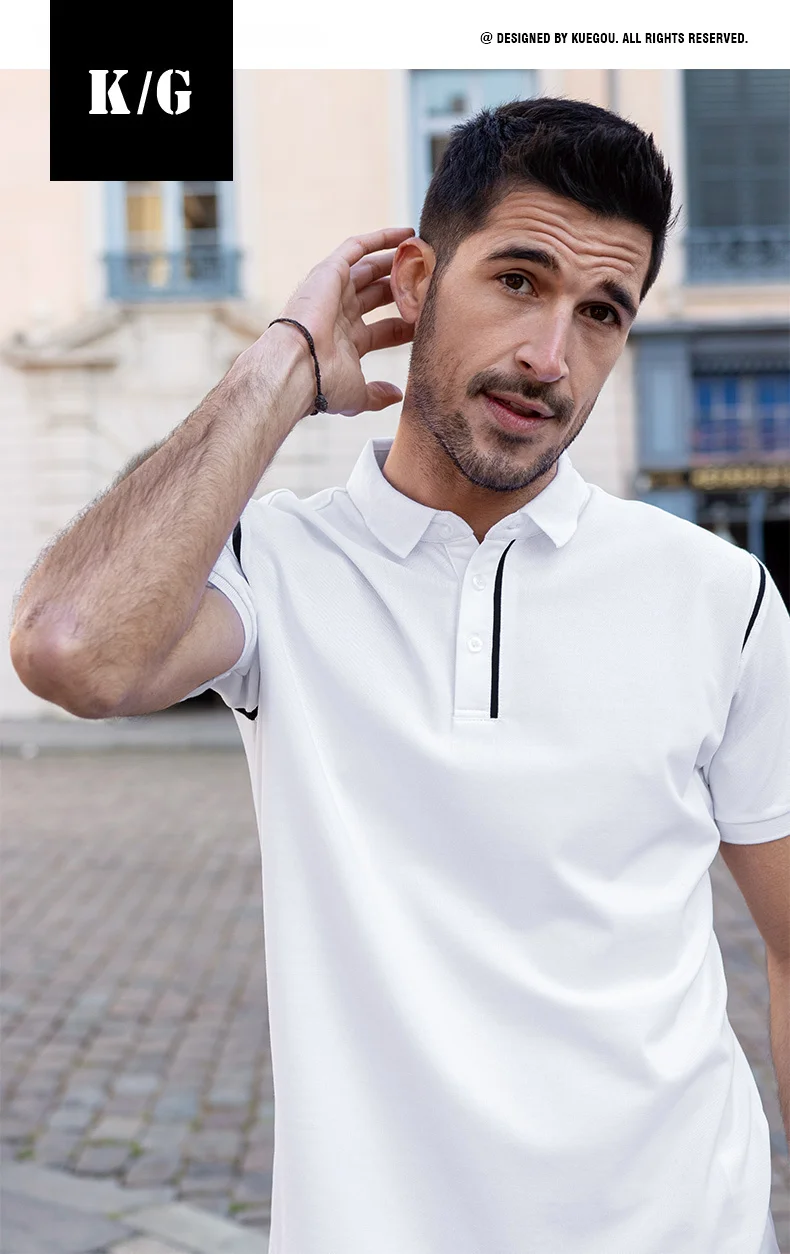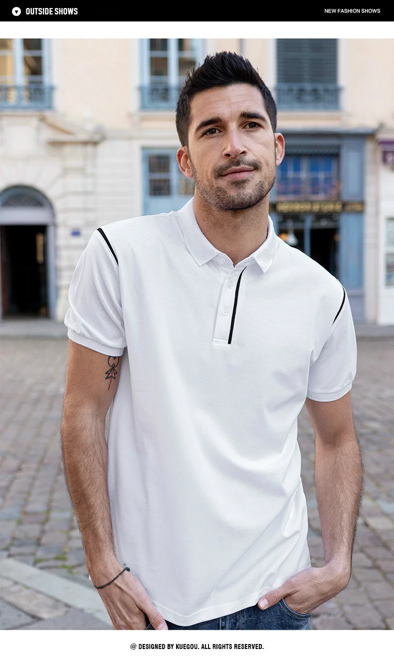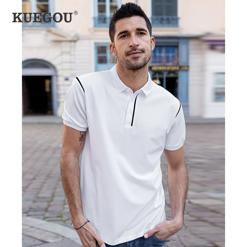 KUEGOU 2022 летняя белая рубашка поло в стиле пэчворк, Мужская модная приталенная рубашка с коротким рукавом, брендовая одежда, топ 2022 90064