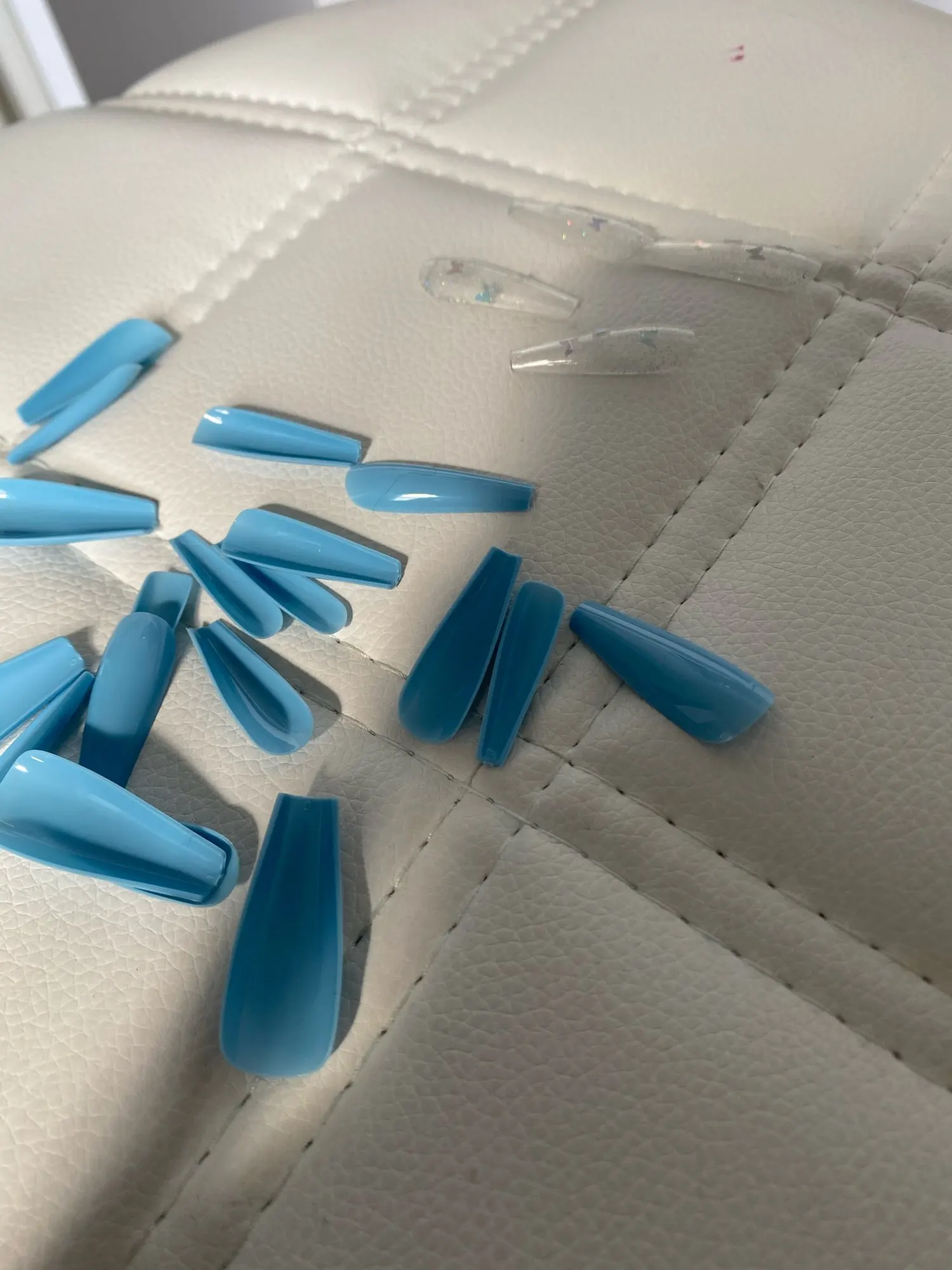 24 шт., съемные накладные ногти в форме гроба с дизайном голубого н...