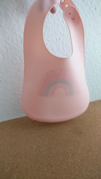 The material is very thin and is not anatomically shaped like others the backside is just flat. The bag where the food is catched is also not formed and is hanging down because of the thin material. But otherwise fast shipping and no smell of the material