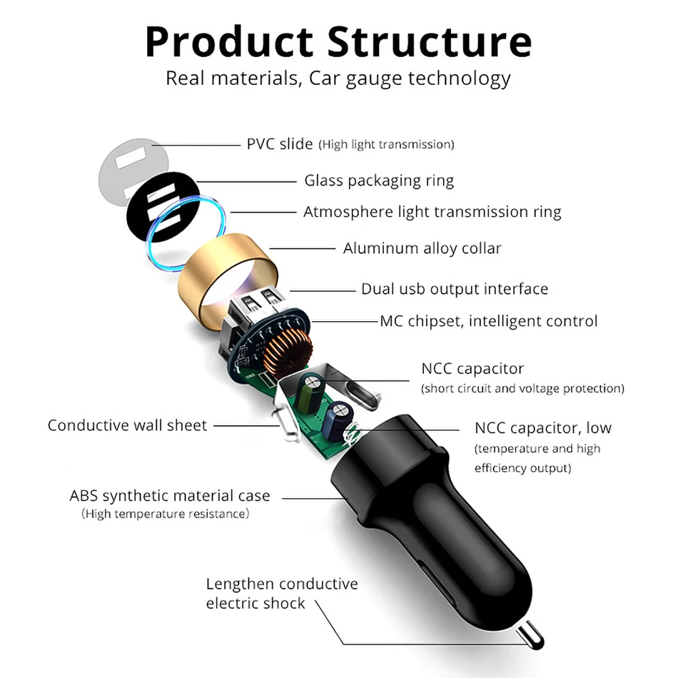 Автомобильное зарядное светодиодный со светодиодным дисплеем, USB-з...