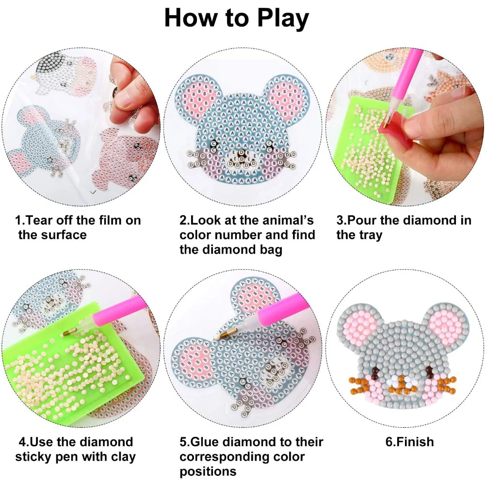 5D DIY наборы для алмазной живописи для детей, тема животных палка ...