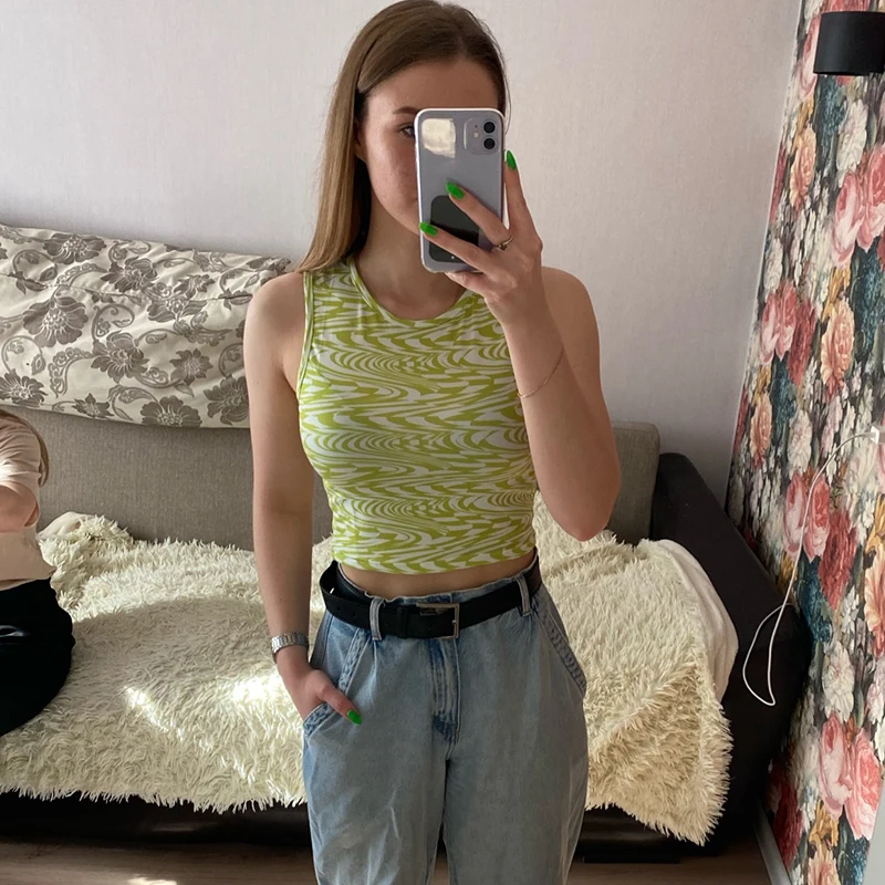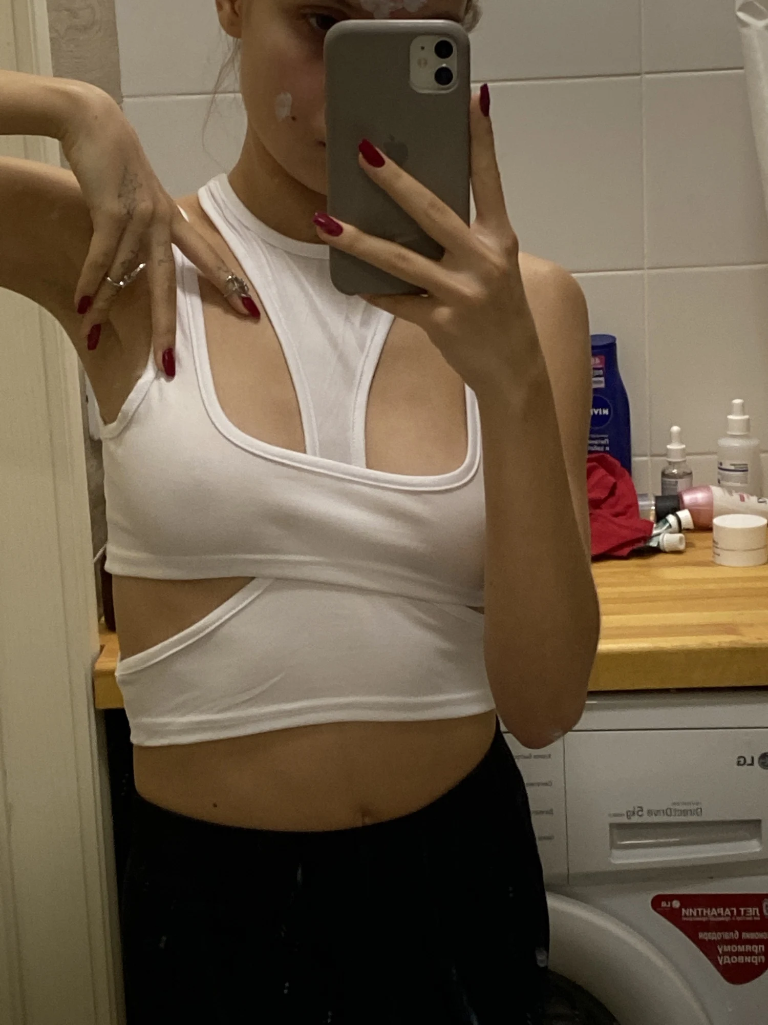 когда я открыла посылку я испугалась так как подумала,что топ порвался,но на самом деле он состоит из двух частей,материал приятный,размер подошёл,но сейчас нужно думать куда такой топ надевать,конечно девушка без комплексов его можно носить везде,топ правда красиво сидит,только вот думаю,что если у вас грудь больших размеров и вы планируете носить его без лифчика она может выпасть так как топ ее удержать не сможет