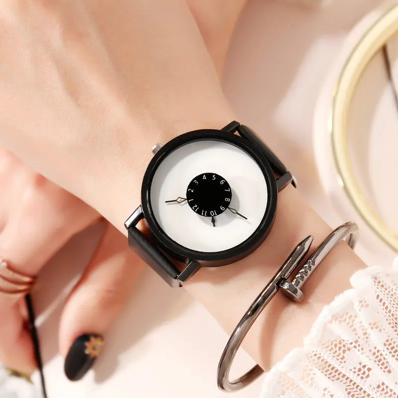 Часы наручные кварцевые с простым циферблатом, модные парные повседневные, с кожаным ремешком, для мужчин и женщин, белые и черные