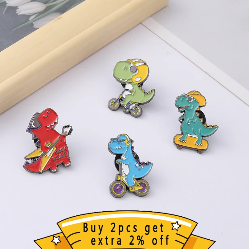 Эмалированная заколка с мультипликационным динозавром, крутые значки для ветра, гитары, скейтборда, броши для женщин, сумка, рюкзак, аксессуары, подарки для друзей