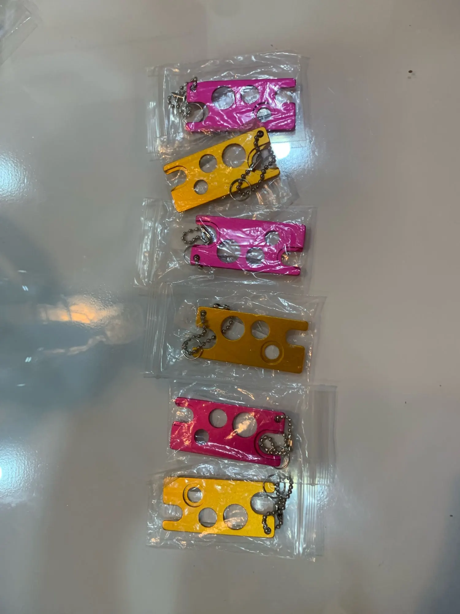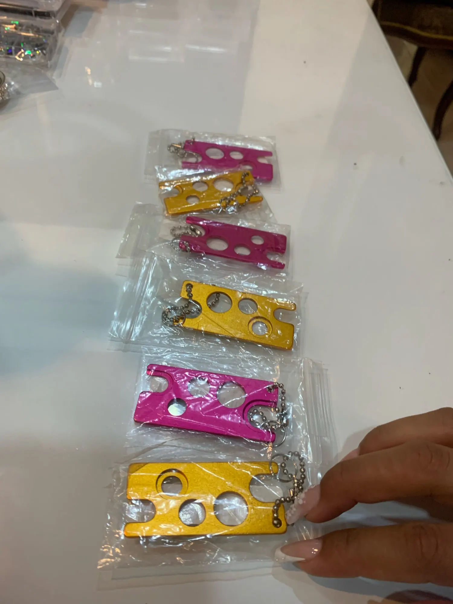 1. Прочный: Изготовлен из твердого сплава цинка, который не легко царапать ролик при использовании2. Удобно: никогда больше не используйте зубы, ножи, ногти или другие громоздкие Инструменты для удаления роликовых бутылок или колпачков редуктора. Нет необходимости в эфирном масле слишком большой или слишком маленький3. Простота в использовании: Эти универсальные ключи работают со всеми бутылками эфирного масла. Также отлично подходит для замены отверстий и колпачков для бутылок без повреждений4. Безопасно и легко: Эти прочные ключи изготовлены из прочного материала с точными отверстиями, чтобы безопасно вставлять отверстия и колпачки ролика даже на металлических бутылках5. Портативность: удобная цепочка позволяет легко получить эти ключи от ваших ключей, чехол для переноски или в любом месте, где вы хотите их прикрепить!