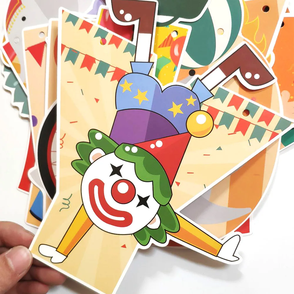 Цирковые украшения для дня рождения, набор полосатых воздушных шаров с животными, радостный баннер, детская круглая сумка для ловушек