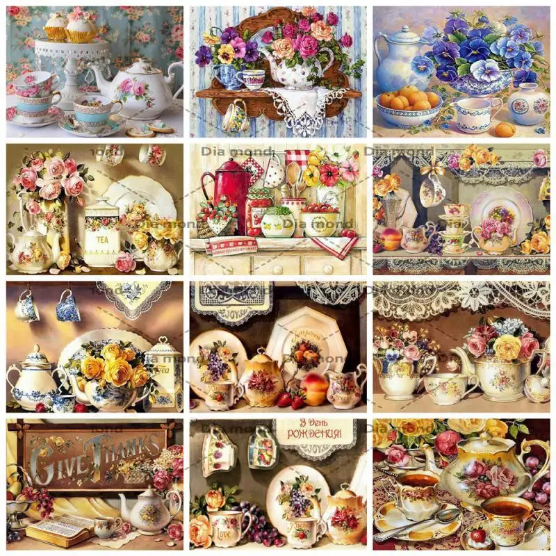 5D алмазная вышивка посуда чашка полная квадратная алмазная живопись Цветочная ваза вышивка крестиком Мозаика домашний кухонный Настенный декор