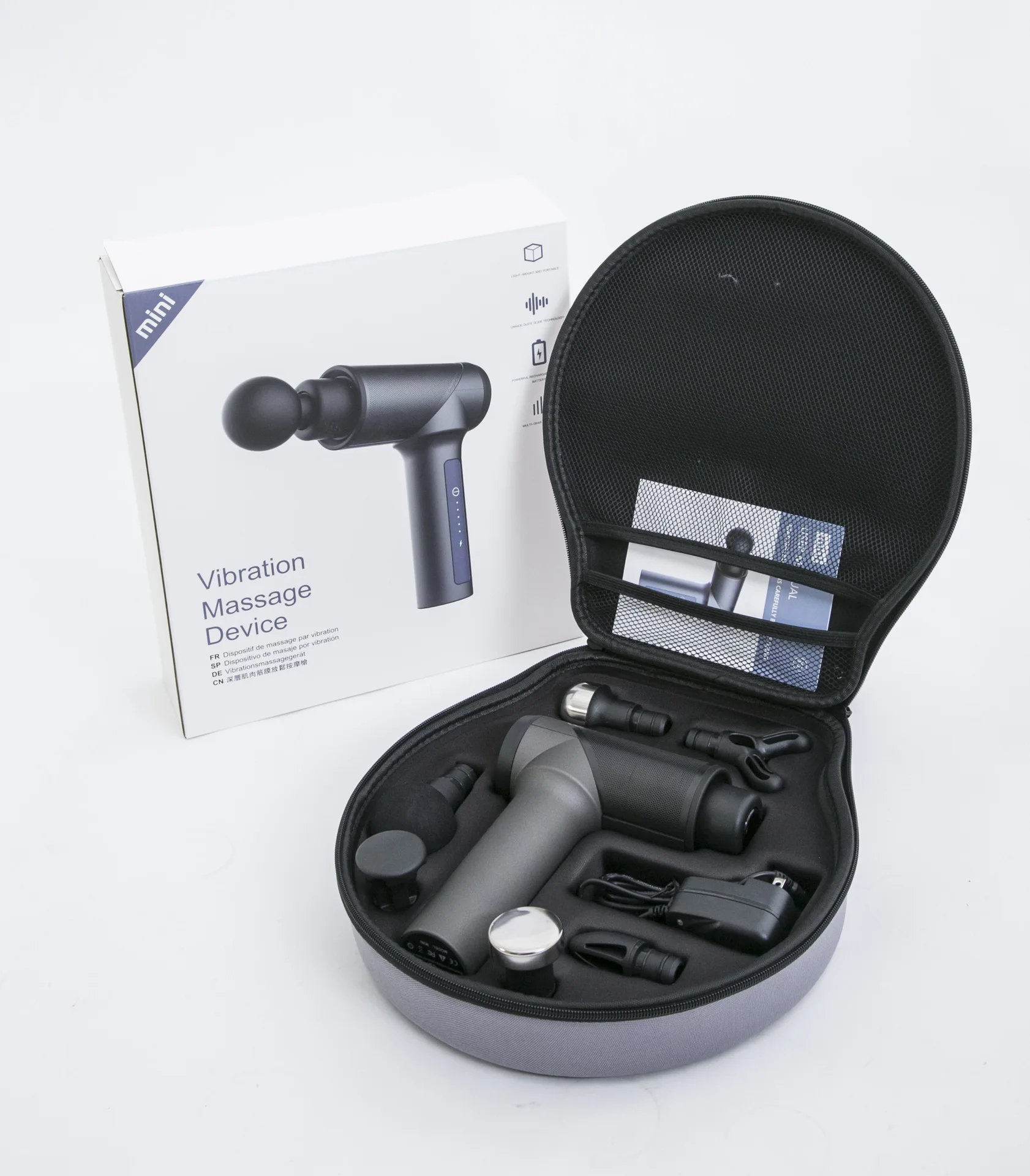 -1 массажное устройство-1 * чехол для переноски-6 массажных насадок-1 * Быстрый адаптер питания-1 * Руководство пользователя
