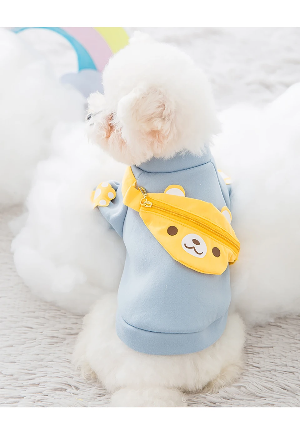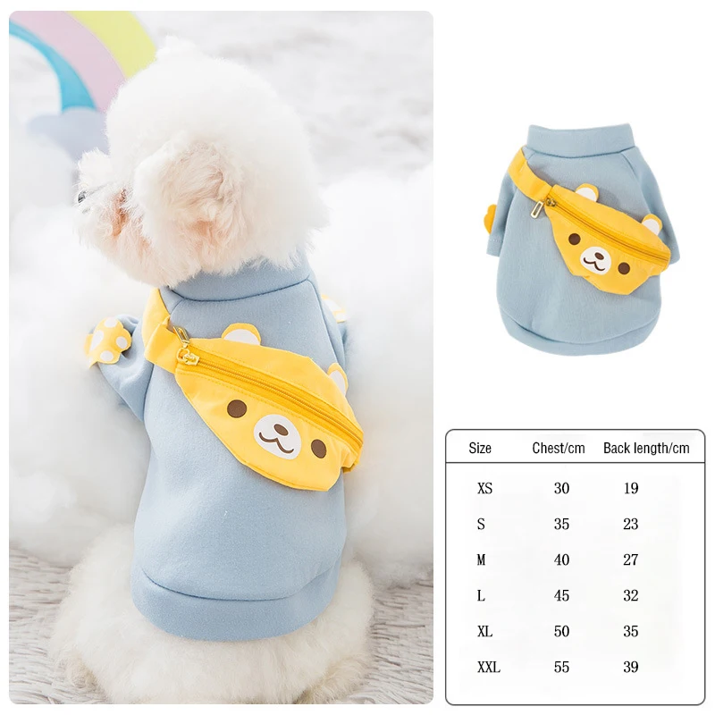 Мультяшный свитер для отдыха и спорта для собак, пальто для щенков, кошек, симпатичный пуловер с двумя ногами, одежда с сумкой в виде медведя для удобства для маленьких и средних собак