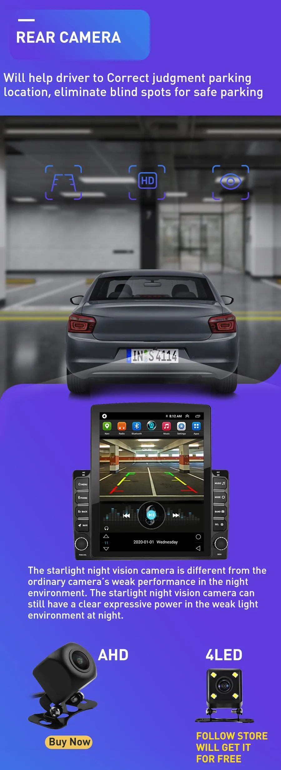 1. Далее магазин получит 4 светодиодный камеры заднего вида бесплатно2.AHD задняя камера (опционально)