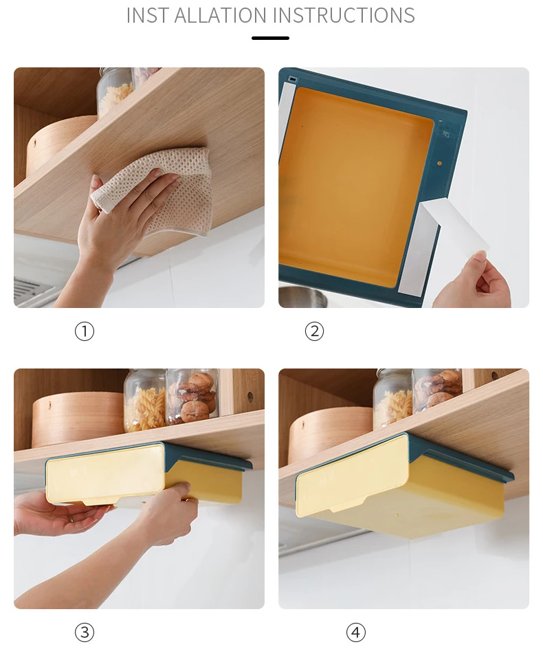 Легко установить с помощью стойким 3м VHB клейкая лента, блок хорошо вписывается на ваш существующий полке. Подходит для кухонных блоков шириной более 32 см (12 ⅝ дюймов).
