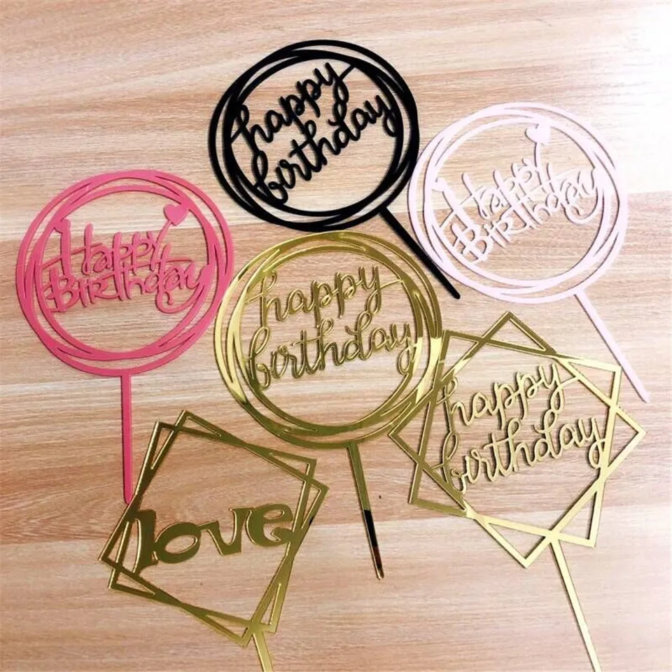 10 шт. Топпер для торта, украшение для дня рождения, вставка для кекса, Детские шоу, золотые, черные, розовые, для детей, для взрослых, торты, блестящие
