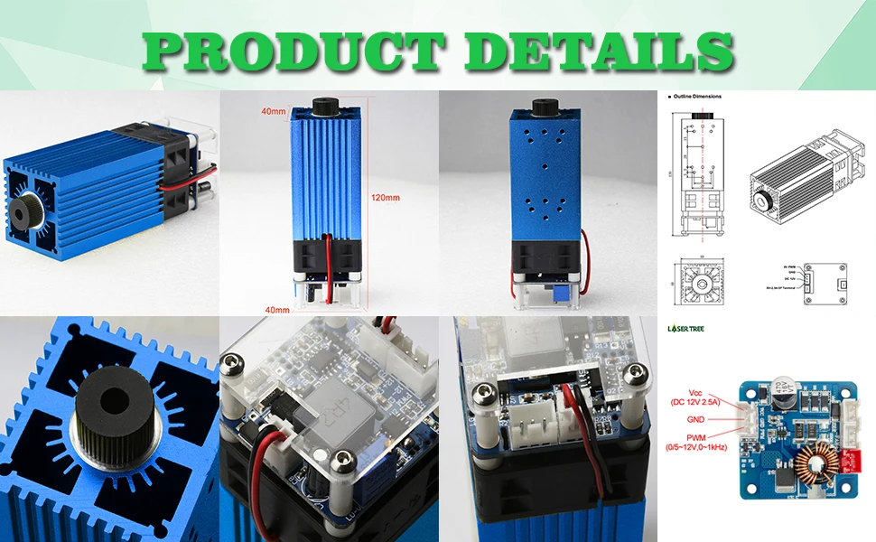 Описание товараСиний лазерный модуль специально разработан для фрезерного станка с ЧПУ и гравировки DIY. Длина волны составляет 450нм, что является эффективным инструментом для лазерной гравировки и резки. Они могут гравировать и резать различные материалы.Характеристика:Синий лазерный модуль --- профессиональная лазерная головка с высокой скоростью и высокой стабильностью. Яркий синий светильник, легко найти при резке.Лазерная головка с фиксированным фокусом/Регулируемая фокусировка, подходит для трехосевого гравировального станка, прост в установке.Легко собрать --- маленький, компактный, удобный и простой в установке.Резьба по 30 Вт-дерево, бумага, кожа, бамбук, пластик, резина, алюминий, нержавеющая сталь, медь и т. д.Спецификация:Выходная мощность эффекта: 30W-StdМатериал: алюминиевый сплав + пластикСветильник Цвет: синийДлина волны: 450нмФорма точки: пунктиформа, фиксированный фокус/регулируемый фокусВходное напряжение: 12 В 2 АПараметры интерфейса: Поддержка TTL сигнала управления питаниемРазмер изделия: 12*4*4 смРазмер упаковки: 14*9*6 смВес изделия: 300 гУпаковочный лист:1 * лазерная головка