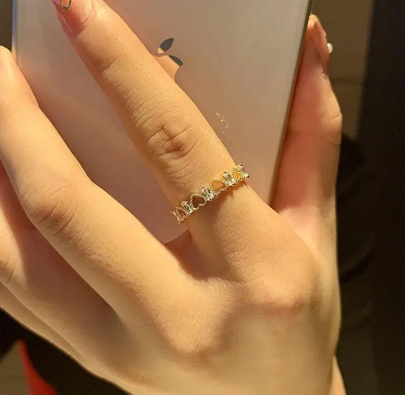 Новое открытое Золотое кольцо в форме сердца из Южной Кореи, изысканное модное простое кольцо на указательный палец, женское банкетное ювелирное изделие