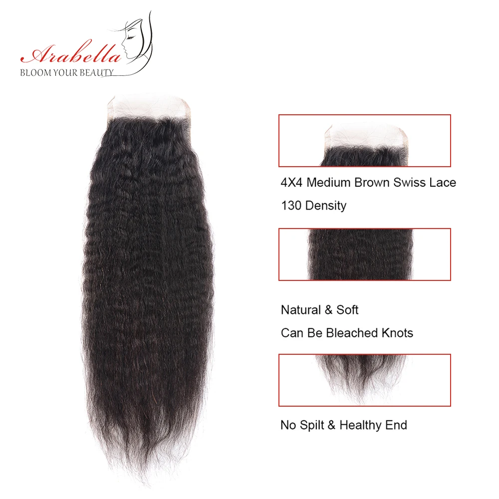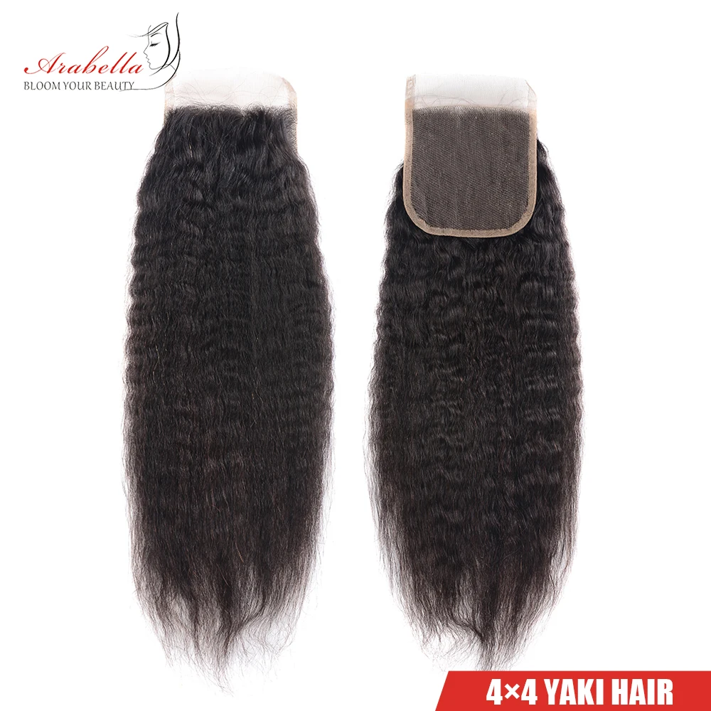 Yaki закрытие 4x4 Прозрачная Кружевная застежка бразильские неповрежденные волосы 100% человеческие волосы арабилла предварительно выщипанная кружевная застежка отбеленные узлы