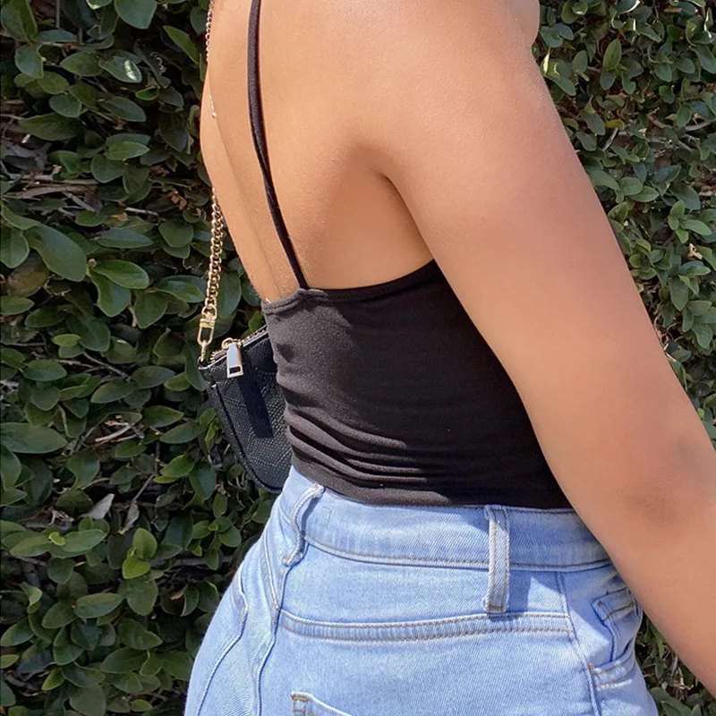 Женский однотонный топ на бретельках, летний женский сексуальный топ с открытым пупком, Модный укороченный топ, клубный Топ для вечеринки, Новинка