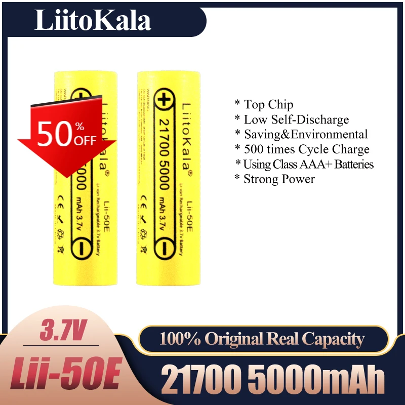 2020 умное устройство для зарядки никель-металлогидридных аккумуляторов от компании LiitoKala: lii-50E 21700 5000 мАч, Перезаряжаемые Батарея 3,7 V 5C разрядки аккумуляторы высокой мощности для высокой мощности Приспособления