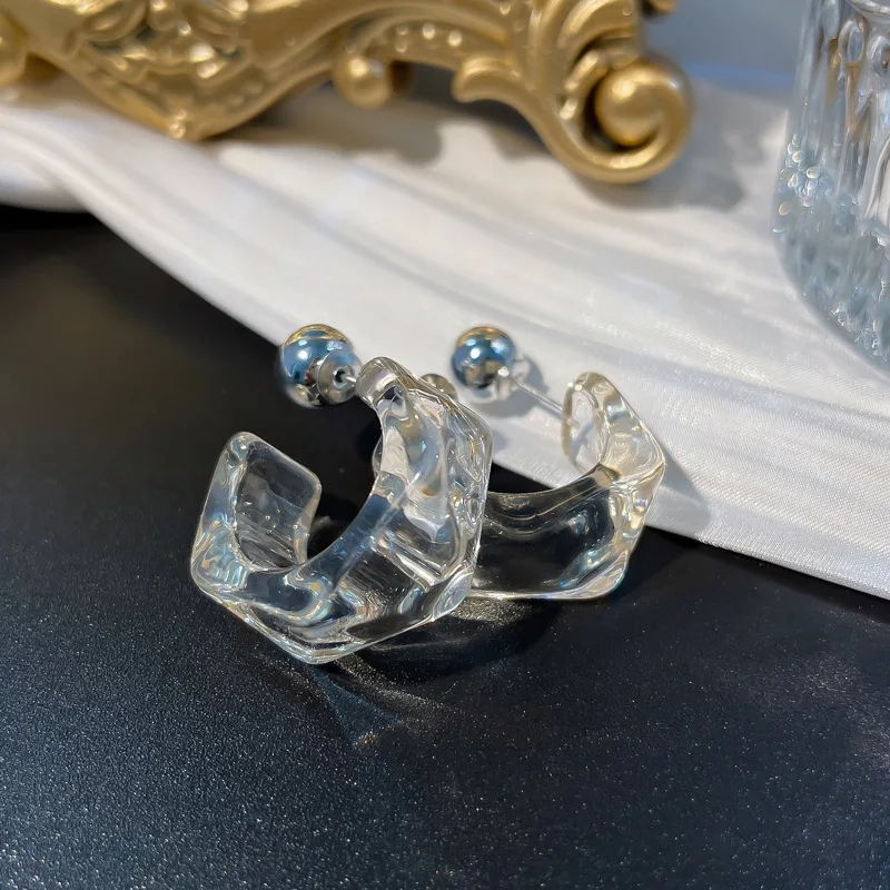 Женские акриловые серьги 2021, модные белые и черные серьги S925, простые французские геометрические прозрачные корейские серьги в стиле ретро